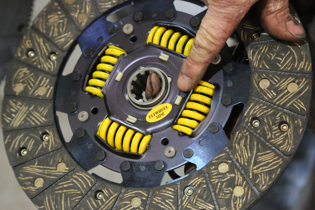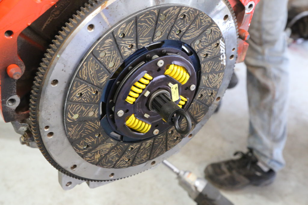 Next, the diaphragm is installed to the flywheel. There may be multiple bolt patterns on the flywheel, so you might have to find the right holes and line it up.