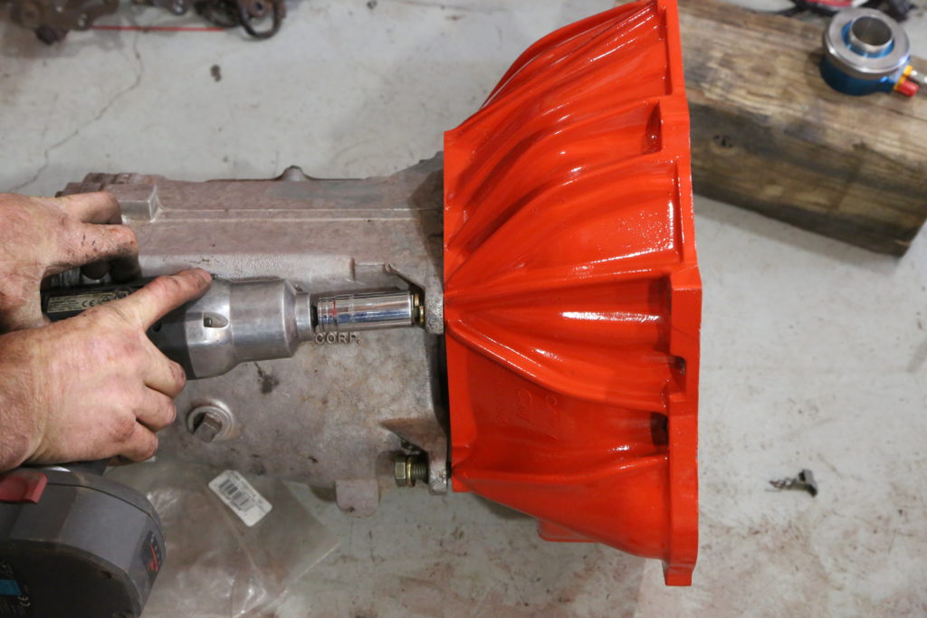 At this point, the bellhousing is removed from the engine and bolted to the transmission using new grade 8 bolts.