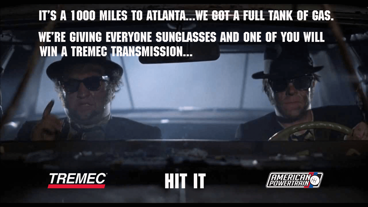 This time…We will also be giving out Blues Brothers Sunglasses!! Elwood from American Powertrain and Jake from Tremec will be out on the tour and giving out Blues Brothers Sunglasses at the American Powertrain/Tremec booth. Registered participants will get a pair of sunglasses and two tickets to enter in the contest. Be sure to look for them on stage each day with more prizes!