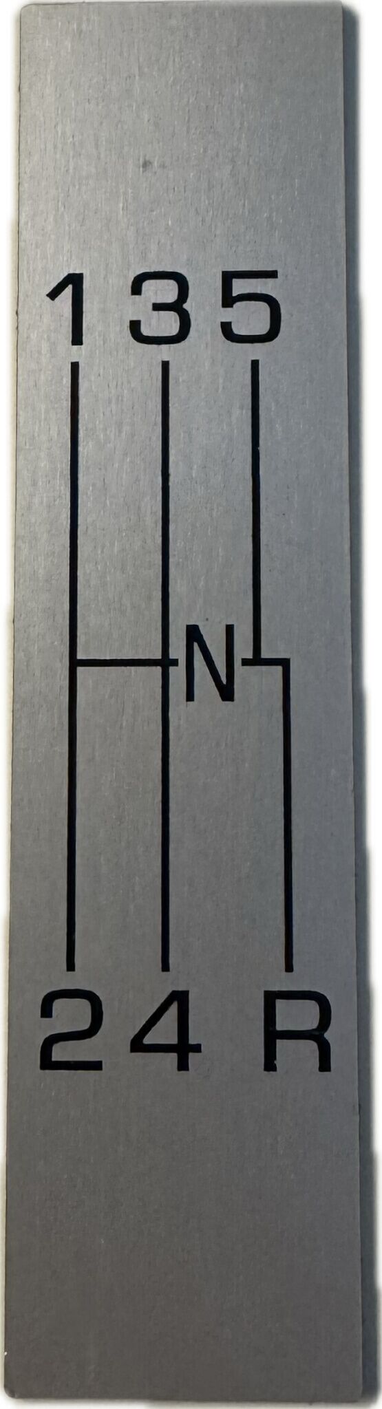 Aluminum etched Tremec T-5, TKX and TKO 5-speed pattern console plate for 1956-62 Corvette. They are the same size as stock plates, so they fit right on top. They come with sticky tape already installed so all you have to do is peel and stick.