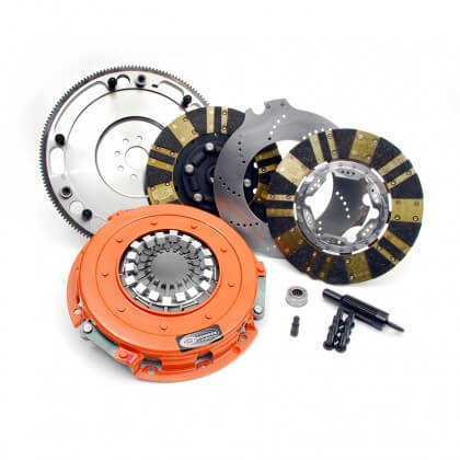 The Centerforce® DYAD DS 10.4″ twin disc clutch has been developed for vehicles requiring a holding capacity of 500 to 1300 ft/lbs of torque at the crank. The pressure plate features our patented centrifugal weight system for superior clamp load over stock and our patented ball bearing actuated pressure plate providing light pedal effort. The discs are equipped with organic segmented facings providing increased holding capacity and the sprung/dampened drive disc provides smooth drivability. …