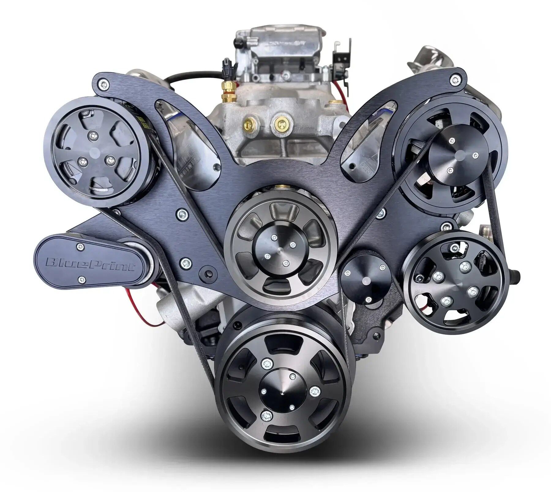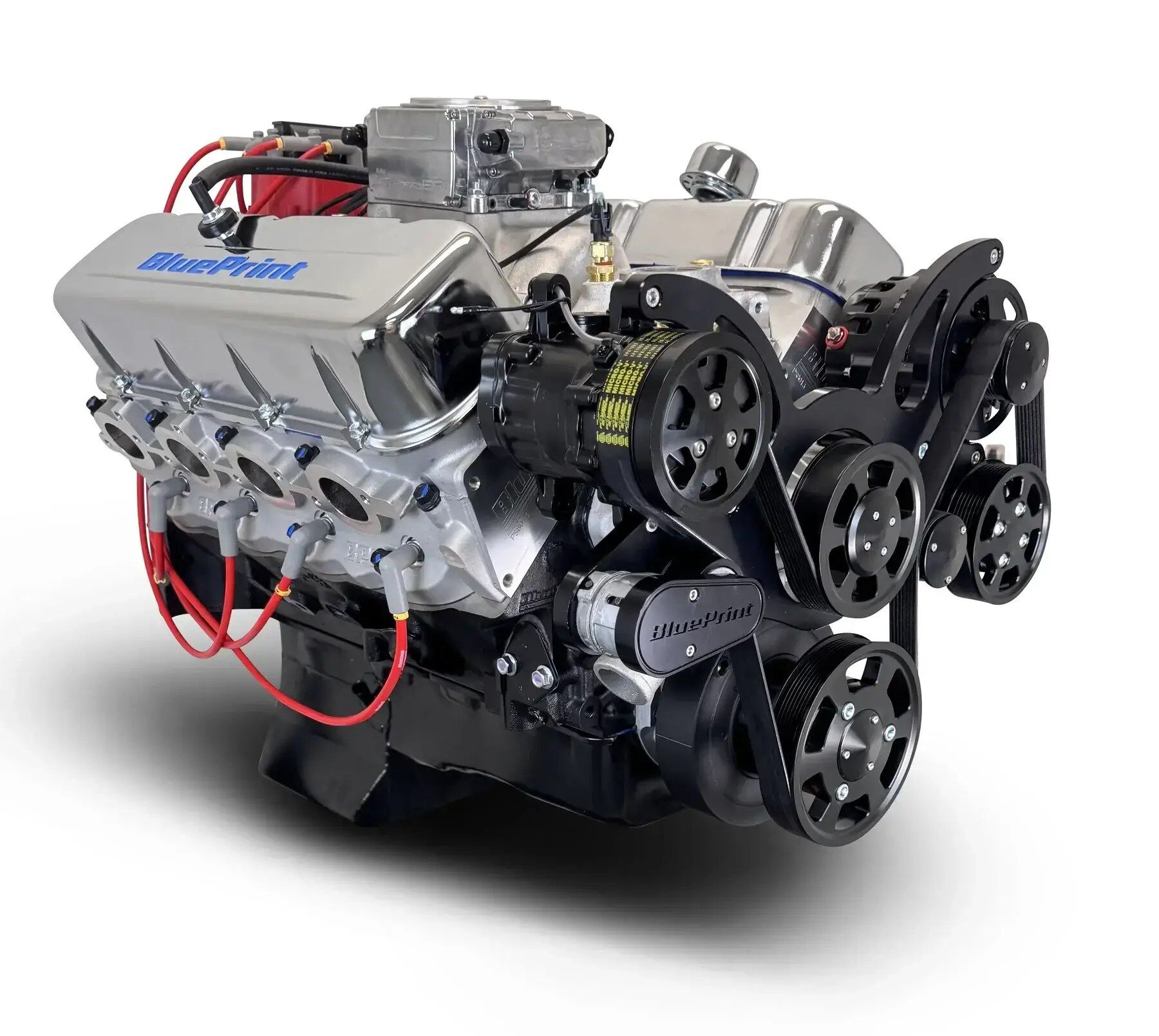 Description Description: Horsepower & Torque: 460 Horsepower / 479 ft. lbs. Torque Compression Ratio: 9.85:1 BluePrint Engines Aluminum Heads BluePrint Engines Hydraulic Roller Cam BluePrint Engines Cast Crankshaft BluePrint Engines Hypereutectic Pistons Block: BluePrint Engines High Strength Cast Iron Block, 454 BBC Manufactured and Machined in the USA! Mech Fuel Pump Provision: Yes 1-Piece Rear Main Seal Standard Deck 4-Bolt Main 4.250″ Bore Rotating Assembly: Cast Crankshaft 4.000″ Stroke OEM Type 6.135″ Connecting Rods w/ 150,000 PSI Bolts Hypereutectic Pistons Externally Balanced Front and Rear Cylinder Heads: BluePrint Aluminum Cylinder Heads – PS8013 119cc Chamber 2.30″ Intake / 1.88″ Exhaust Valves 316cc Intake / 124cc Exhaust Runners Cylinder Heads Feature a .300 in. Raised Exhaust Port vs an OEM Casting (Must Verify Header/Exhaust Clearance) Cam Specs: Hydraulic Roller .501 Intake / .510 Exhaust Lift 216 Intake / 228 Exhaust Duration @ .050-112 Degree Lobe Separation Ignition Timing: Initial Timing 10-16° and Total Timing 32-34° Also Includes: Black Front Accessory Drive with Water Pump, A/C Compressor, Alternator, and Power Steering Pump Intake Manifold Dual Plane, Satin Aluminum Holley Sniper 2 EFI System – BPP550-510-3XX Pro Billet Ready Run Distributor – BPP350RBK Intake Manifold Dual Plane, Satin Aluminum Harmonic Balancer Timing Cover Valve Covers Dipstick Oil Pan Notes: The front accessory drive on this engine fits many vehicles, however it is the customer responsibility to accurately measure and confirm fitment. Note this is a low-profile design, but things such as power steering hoses, alternator wiring, and additional fittings/fabrication may be required on some vehicles. This engine is an excellent cruiser and daily driver engine. This engine makes up to 15 inches of vacuum, and is designed to work excellent with power brakes, stock torque converter, stock gearing, and run on 87 octane fuel. Features External 42.5 oz. imbalance. Recommend BluePrint Engines flywheel 14096987 or BluePrint Engines flex plate 399973 .