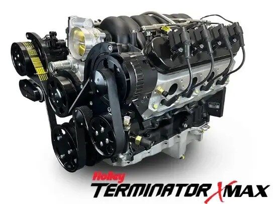 The Blueprint Engines 376 cubic inch Pro Series crate engine is a dyno-tested, turnkey powerplant that delivers 530 horsepower and 495 lb-ft of torque, making it an ideal match for Holley’s Terminator X Max 550-931 EFI system. This LSX-based engine features a BluePrint Engines High Strength cast iron (LSX Style) block with a nodular iron crankshaft, forged rods, and hypereutectic pistons, all internally balanced for durability and long-term performance. Paired with LS3-style aluminum heads and a .612 Intake / .585 Exhaust Lift hydraulic roller cam, the 10.7:1 compression ratio offers strong street and strip capability. The Terminator X Max ECU included in the kit integrates seamlessly with this engine’s 58x crank and 4x cam sensor setup, providing plug-and-play functionality with drive-by-wire throttle, coil packs, and EV6-style fuel injectors already installed. The ECU’s self-learning fuel map ensures easy startup and quick adaptation to the engine’s fueling needs without complex tuning, while also enabling expandability for nitrous, boost control, or electric fan integration via CAN or I/O modules like Holley’s 554-165. With included accessories like a pre-installed intake manifold, injectors, throttle body, water pump, and an easy to mount DBW pedal, this engine is truly swap-ready. Whether for a restomod, pro-touring build, or a street performance application, the combination of a dyno-certified engine and the advanced control of the Terminator X Max offers unmatched reliability, tunability, and future upgrade potential—all backed by a 30-month/50,000-mile warranty.