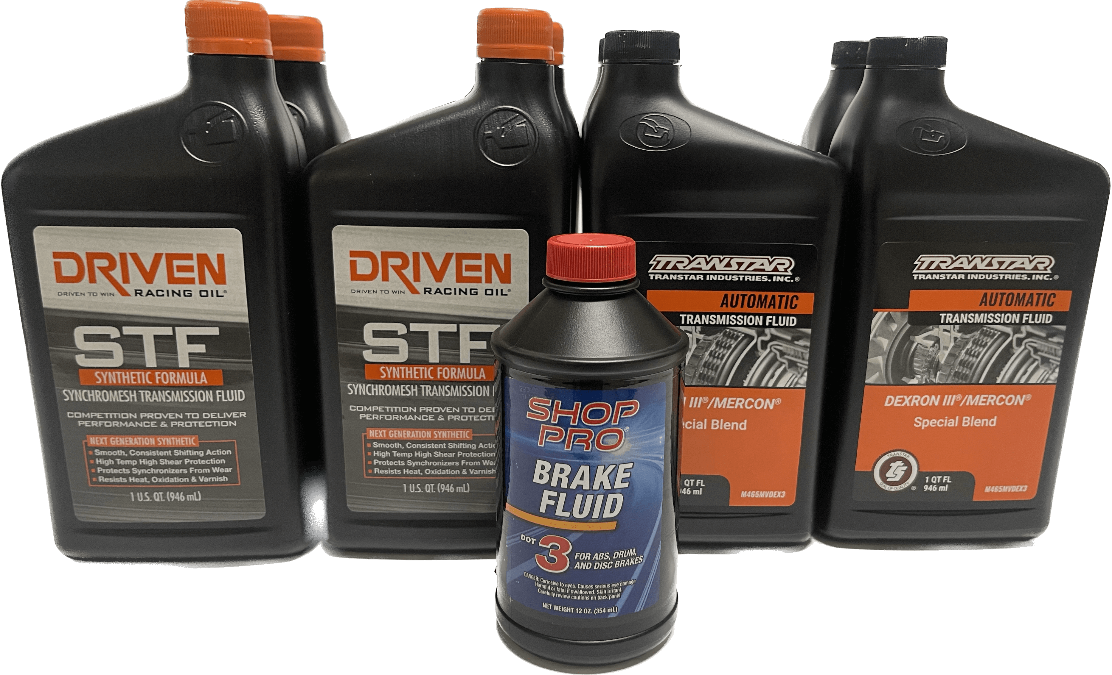 Got a new TREMEC 5 or 6-speed transmission? Get the right fluid the first time with our complete oil service package. Includes DOT 3 brake fluid for your hydraulic clutch bearing. We include break in oil. Drive your car 500-1000 miles. Drain the break in fluid and then replace it with high performance Driven Racing Oil Synchromesh Fluid!