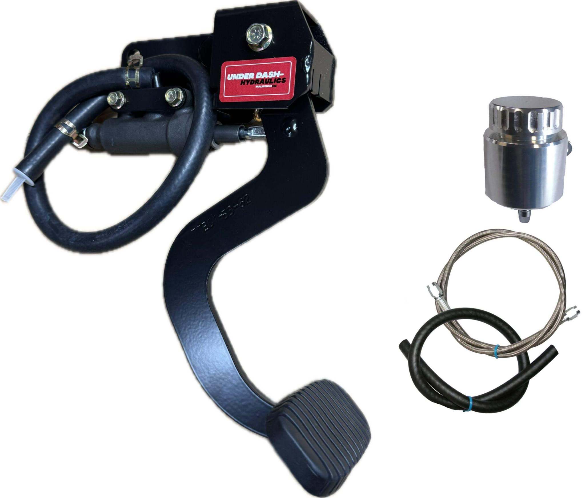 Underdash Hydraulic Clutch Conversion kit for 1953-62 Corvette. Completely bolt in kit with Malwood integrated master cylinder that mounts under the dash. Takes all the guesswork out of mounting and pedal rod ratio. Pedal kit only. Works with most hydraulic release bearings.