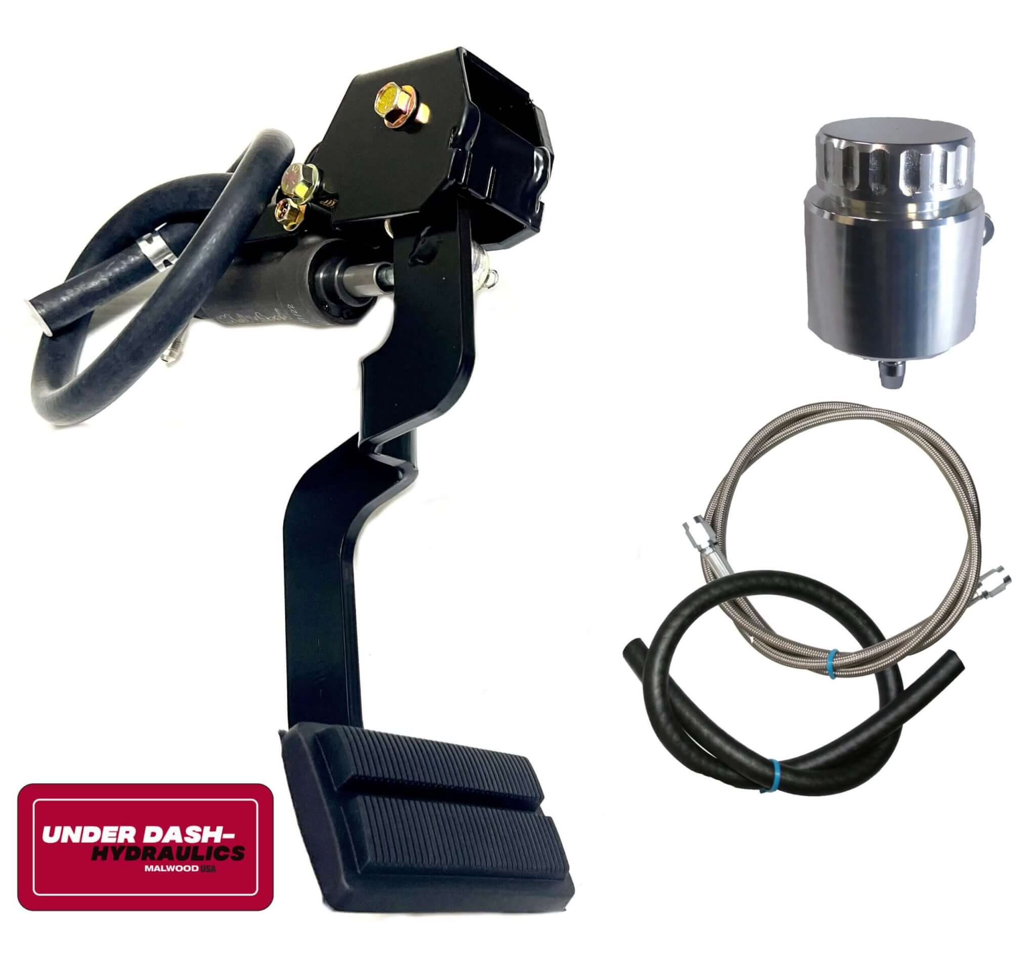 Underdash Hydraulics Clutch Conversion kit for 61-64 Ford F-100. Completely bolt in kit with integrated master cylinder that mounts under the dash. Takes all the guesswork out of mounting and pedal rod ratio. Works with most hydraulic slave cylinders. Matches perfectly with our Hydramax kits!
