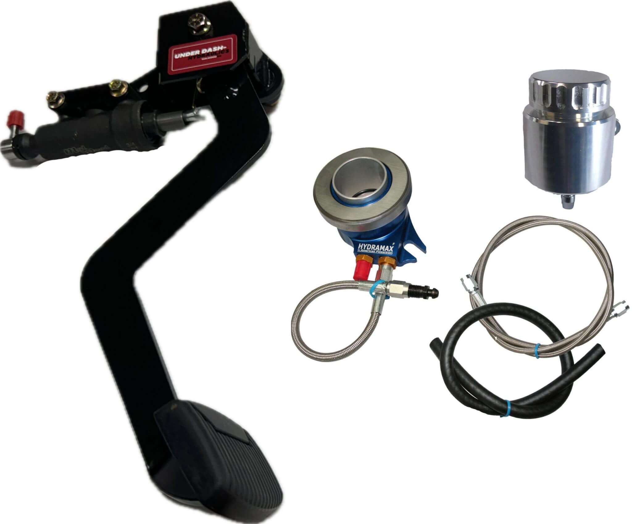 Underdash Hydraulics Clutch Conversion kit for 1960-64 Ford Galaxy Completely bolt in kit with integrated master cylinder that mounts under the dash. Takes all the guesswork out of mounting and pedal rod ratio. Comes with our Hydramax billet release bearing kit for 5-speed or 6-speed.