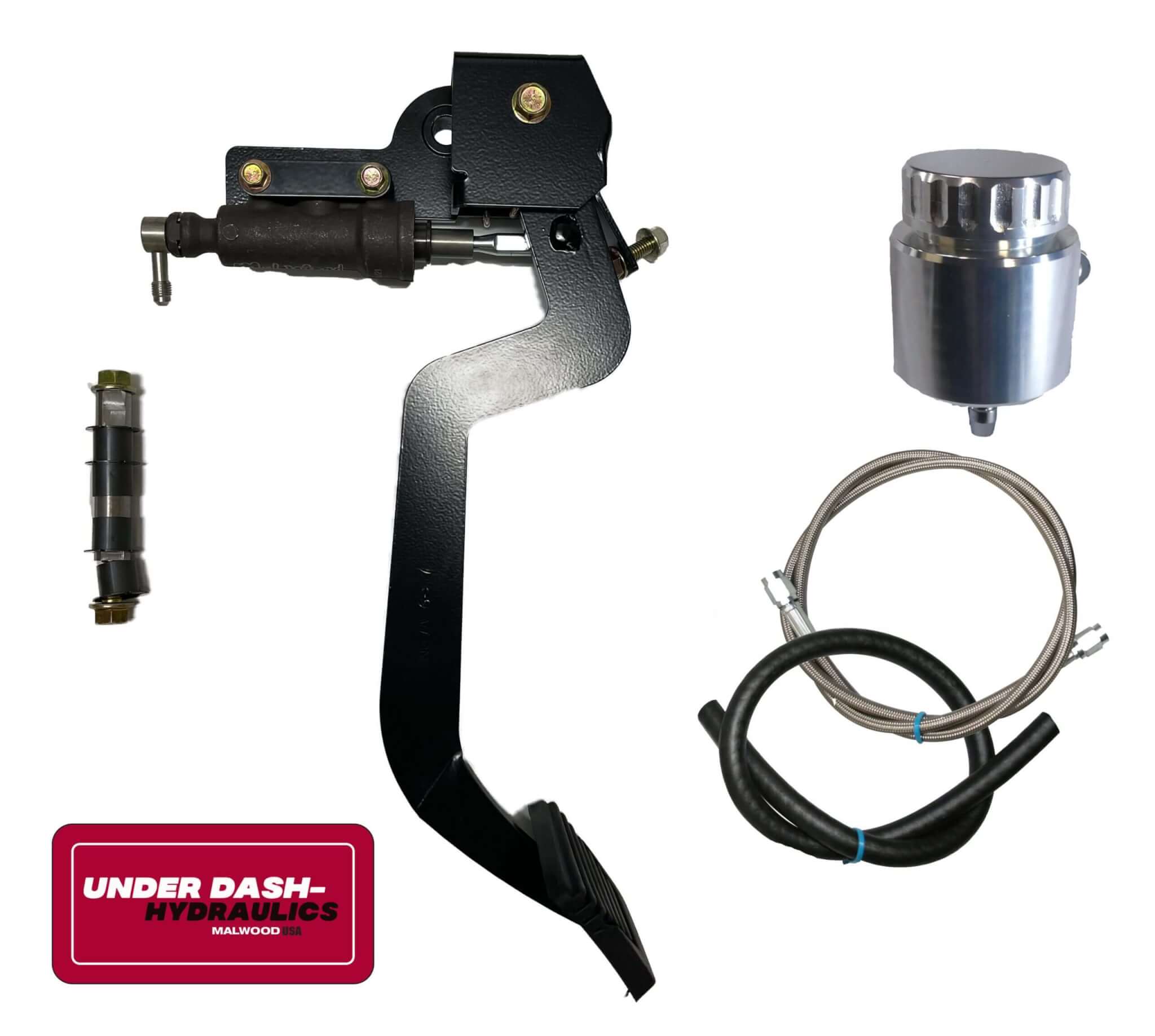 Underdash Hydraulics Clutch Conversion kit for 1962-65 Chevy II/Nova. Completely bolt in kit with integrated master cylinder that mounts under the dash. Takes all the guesswork out of mounting and pedal rod ratio.