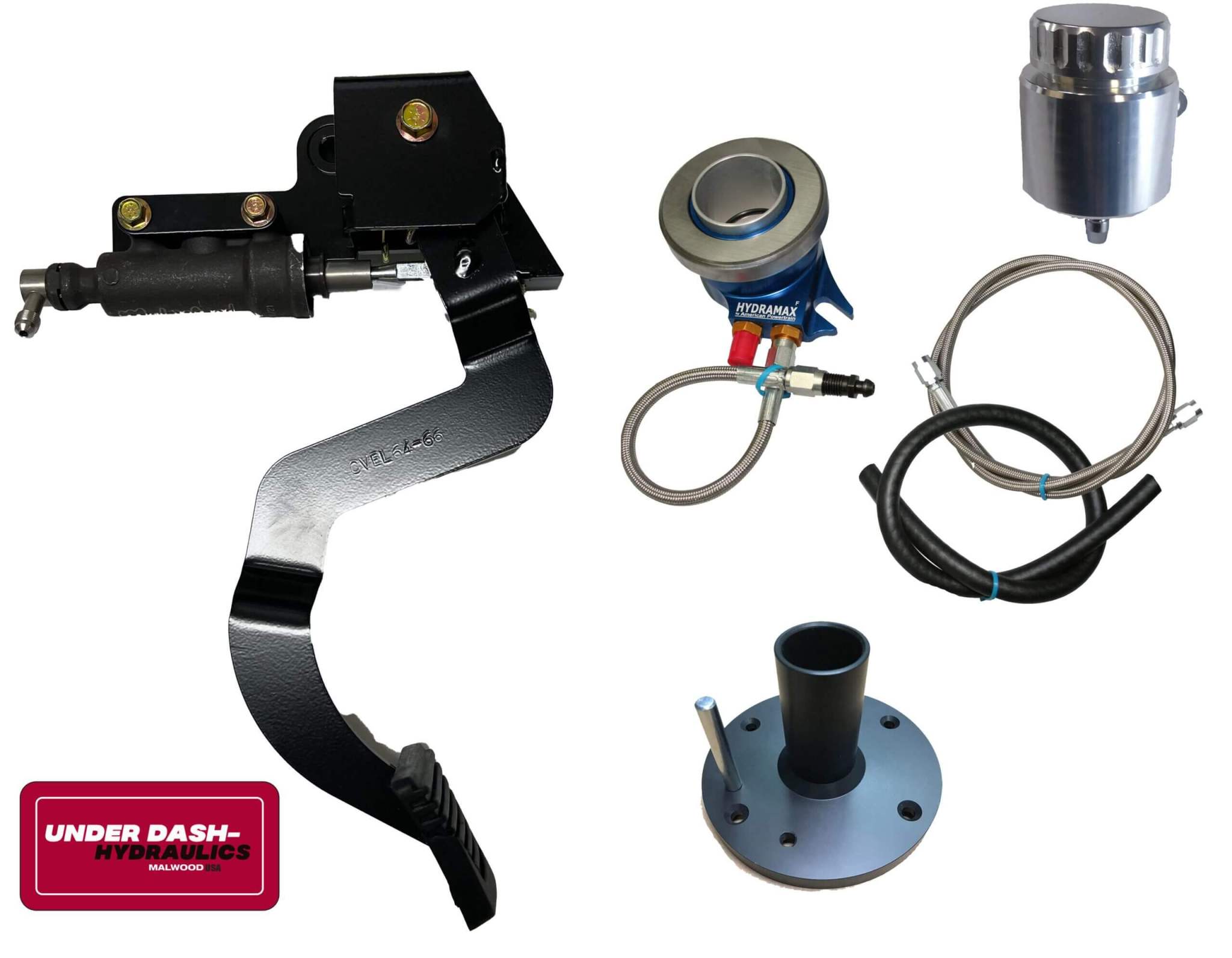 Underdash Hydraulics Clutch Conversion kit for GM A-body 64-66. Completely bolt in kit with integrated master cylinder that mounts under the dash. Takes all the guesswork out of mounting and pedal rod ratio. Comes with our Hydramax billet release bearing kit for GM Tremec 6-speeds
