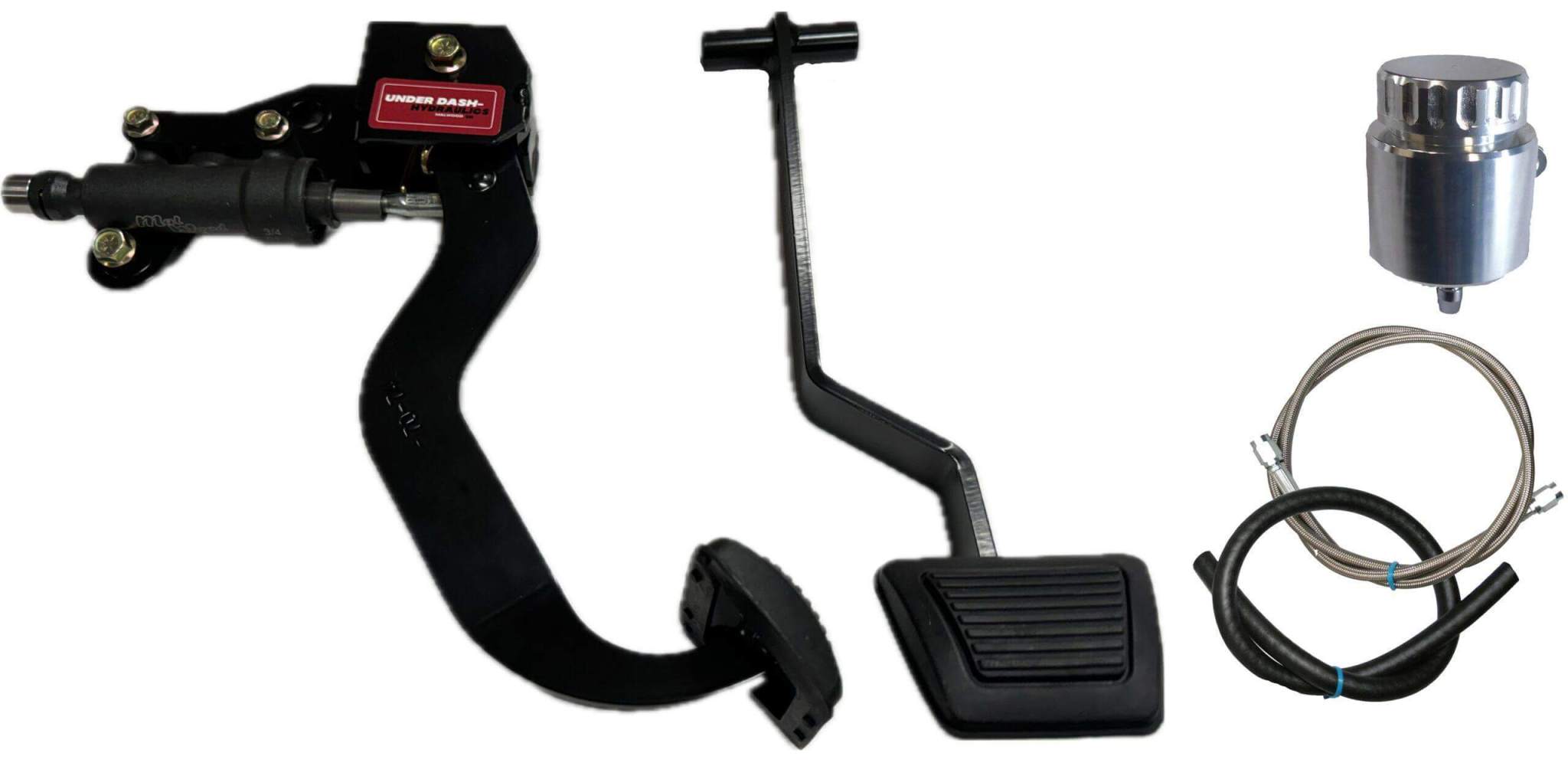 Underdash Hydraulic Clutch Conversion kit for 1970-74 Mopar E-body. Completely bolt in kit with Malwood integrated master cylinder that mounts under the dash. Takes all the guesswork out of mounting and pedal rod ratio.