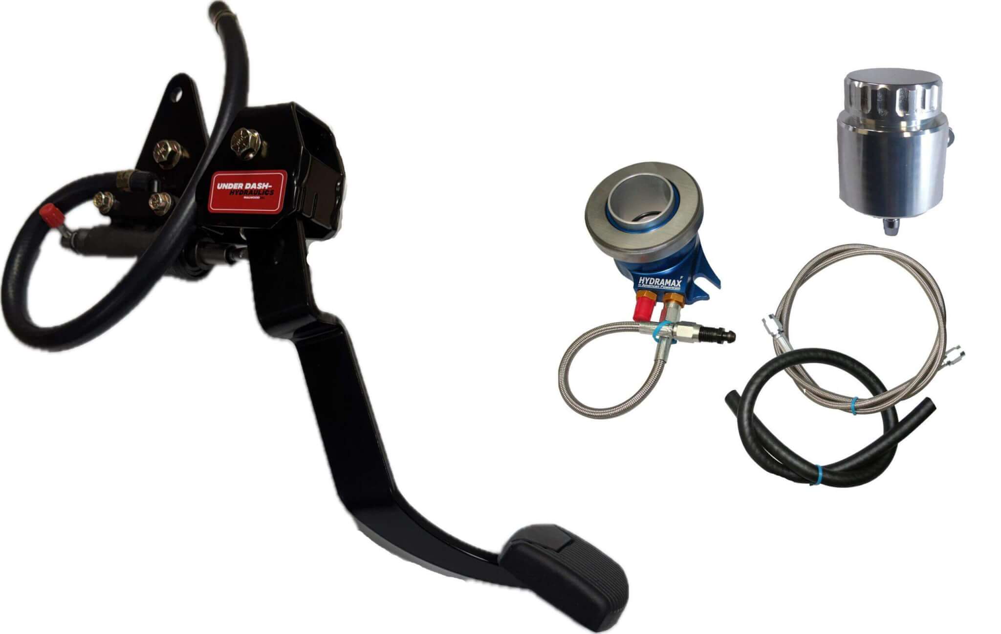 Underdash Hydraulics Clutch Conversion kit for 1980-86 Ford F-150. Completely bolt in kit with integrated master cylinder that mounts under the dash. Takes all the guesswork out of mounting and pedal rod ratio. Comes with our Hydramax billet release bearing kit for 5-speed or 6-speed.