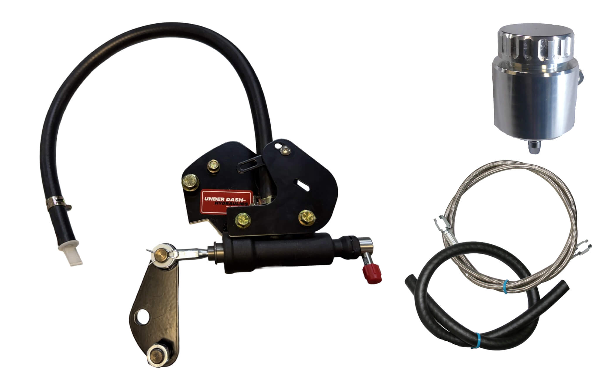 integrated under dash 3/4″ bore master cylinder. No guesswork for clutch rod angle.