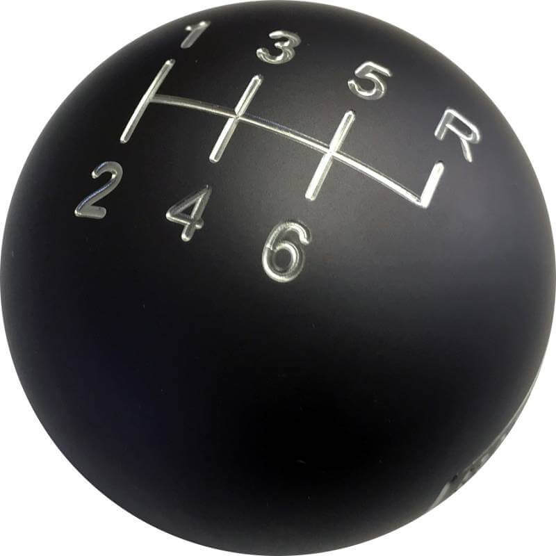 Gunmetal grey billet aluminum shift knob with T-56/Magnum 6-speed shift pattern and a subtle American Powertrain logo on the side.