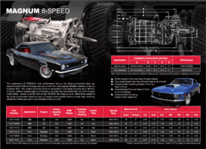 MAGNUM 6-Speed for GM, 26-spline input, wide ratio, 2.97, 2.10, 1.46, 1:1, .74, .50 WIDE RATIO VERSION great for everyday street use.