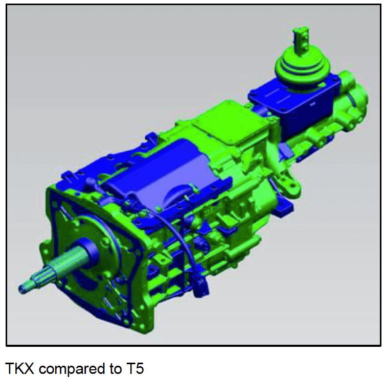 Check out the rendering from Tremec showing the size differences in the TKX, TKO and T-5. TKX is in green.